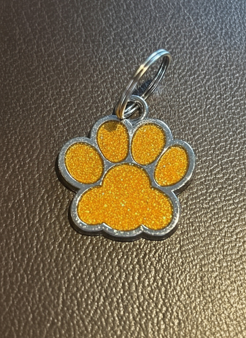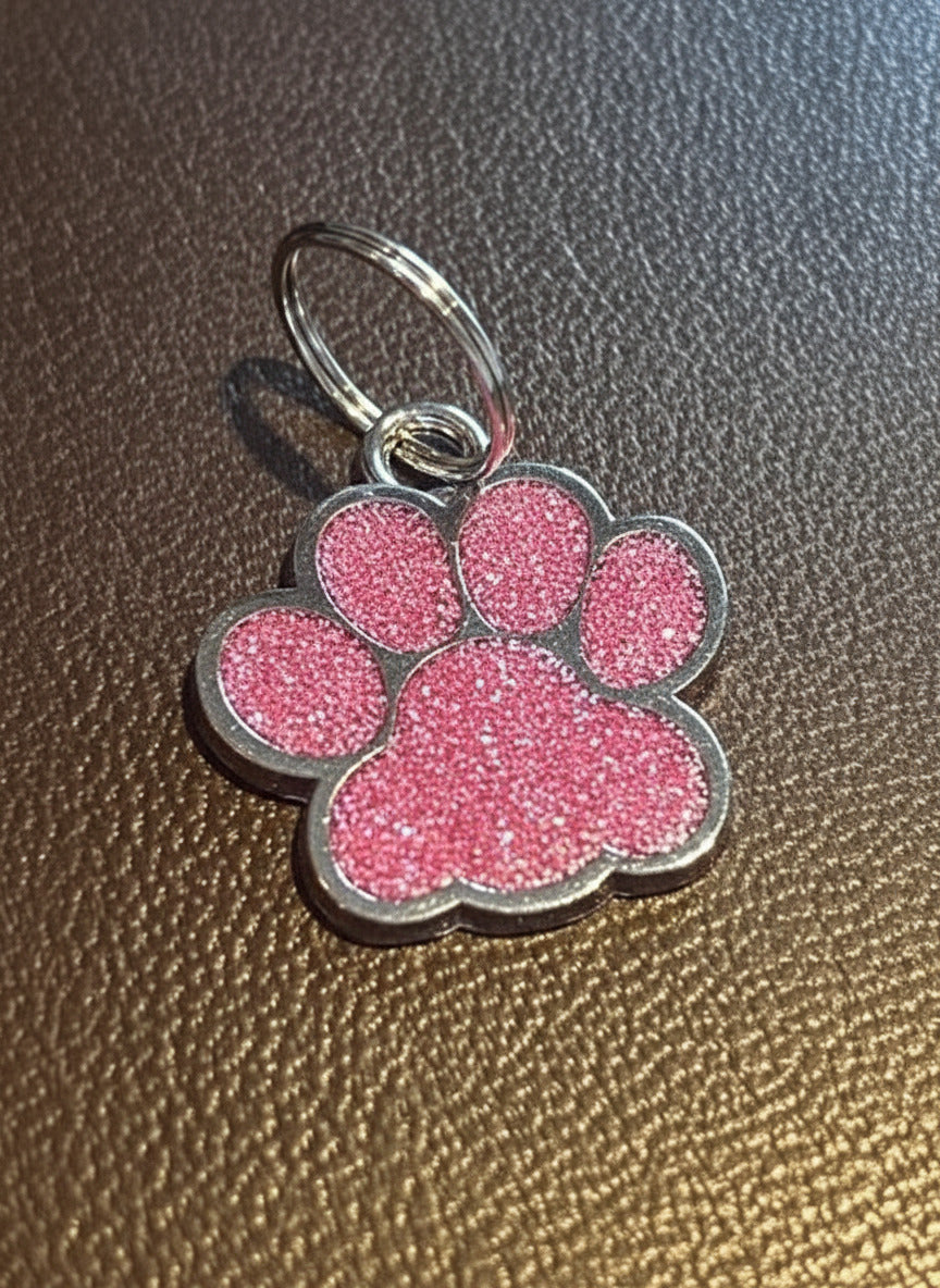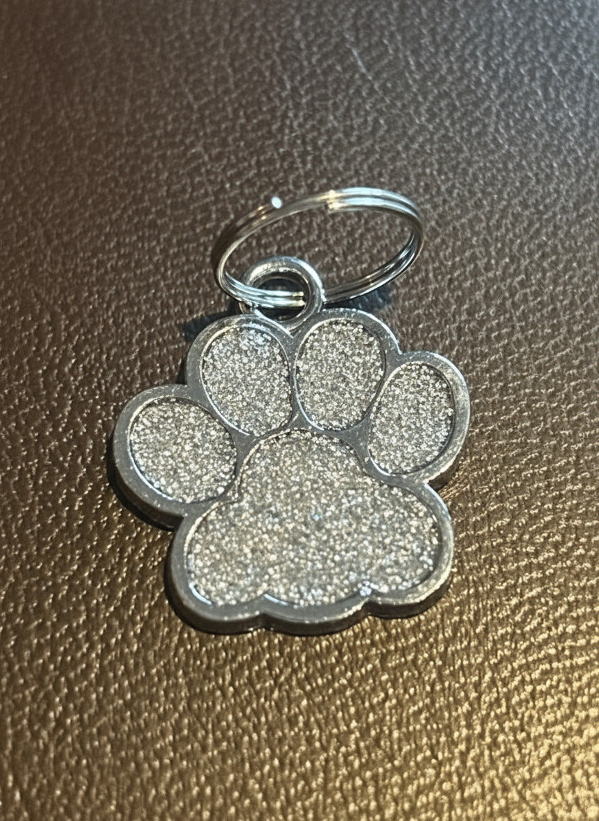 Unser Große Hundepfoten-Anhänger mit Glitzer ist ein echter Hingucker! Mit funkelndem Glitzer-Design und persönlicher Gravur trägst du dein Haustier immer bei dir – ob am Schlüsselbund, an der Tasche oder am Halsband deines neuen Vierbeiners.